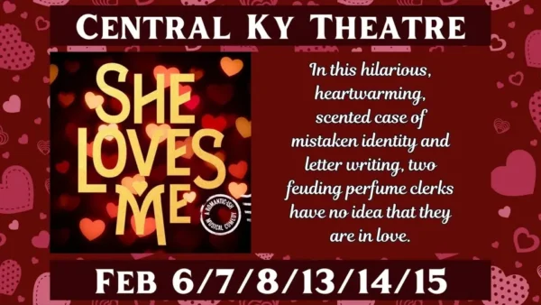 CKT presents: She Loves Me in Special Events & Festivals Start February 6, 2026 7:00 pm End February 8, 2026 Springfield Opera House 124 W. Main Street, Springfield, KY 40069